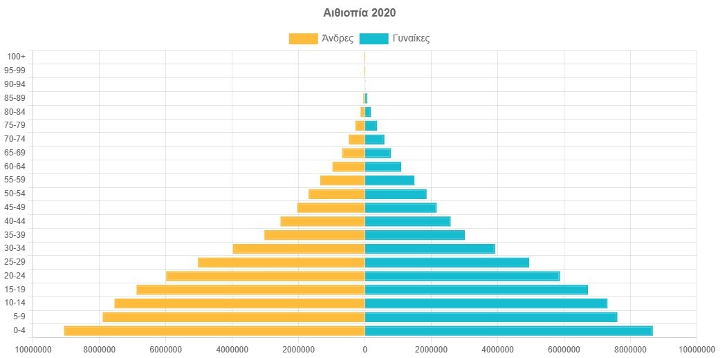 Γράφημα 1: Αύξηση Πληθυσμού (νεανικός πληθυσμός) – Αιθιοπία.