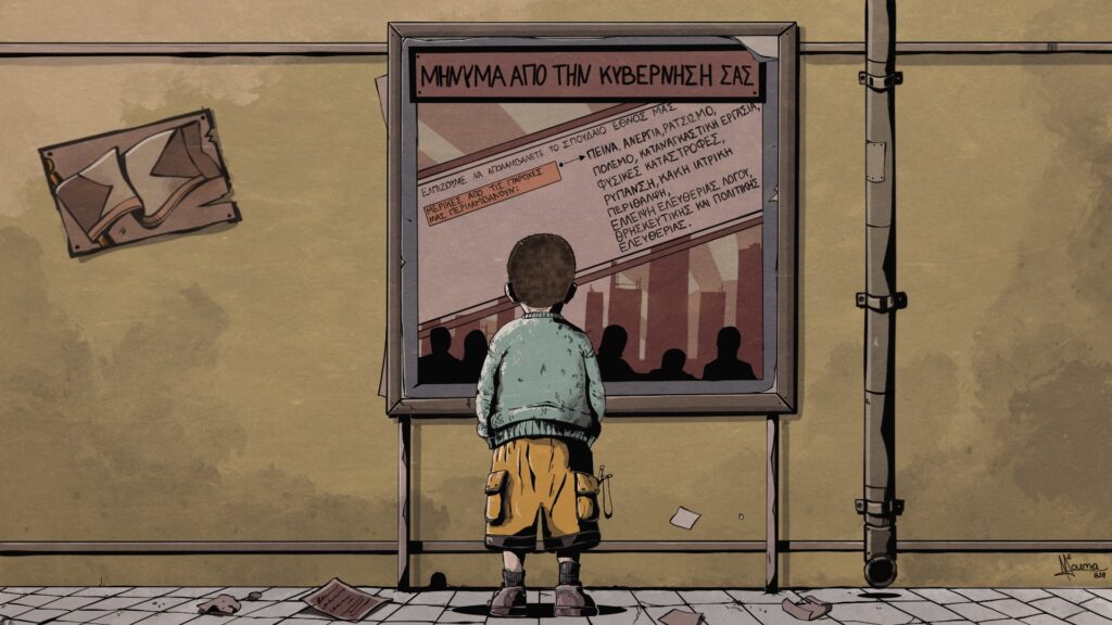Το παραπάνω σκίτσο δείχνει ένα μήνυμα από την κυβέρνηση του αγοριού. Είναι χαρούμενο το αγόρι;
